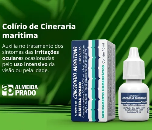 Formulado com ingredientes ativos homeopáticos da natureza, o COLÍRIO DE CINERARIA MARITIMA age melhorando a nitidez e diminuindo o cansaço dos olhos.