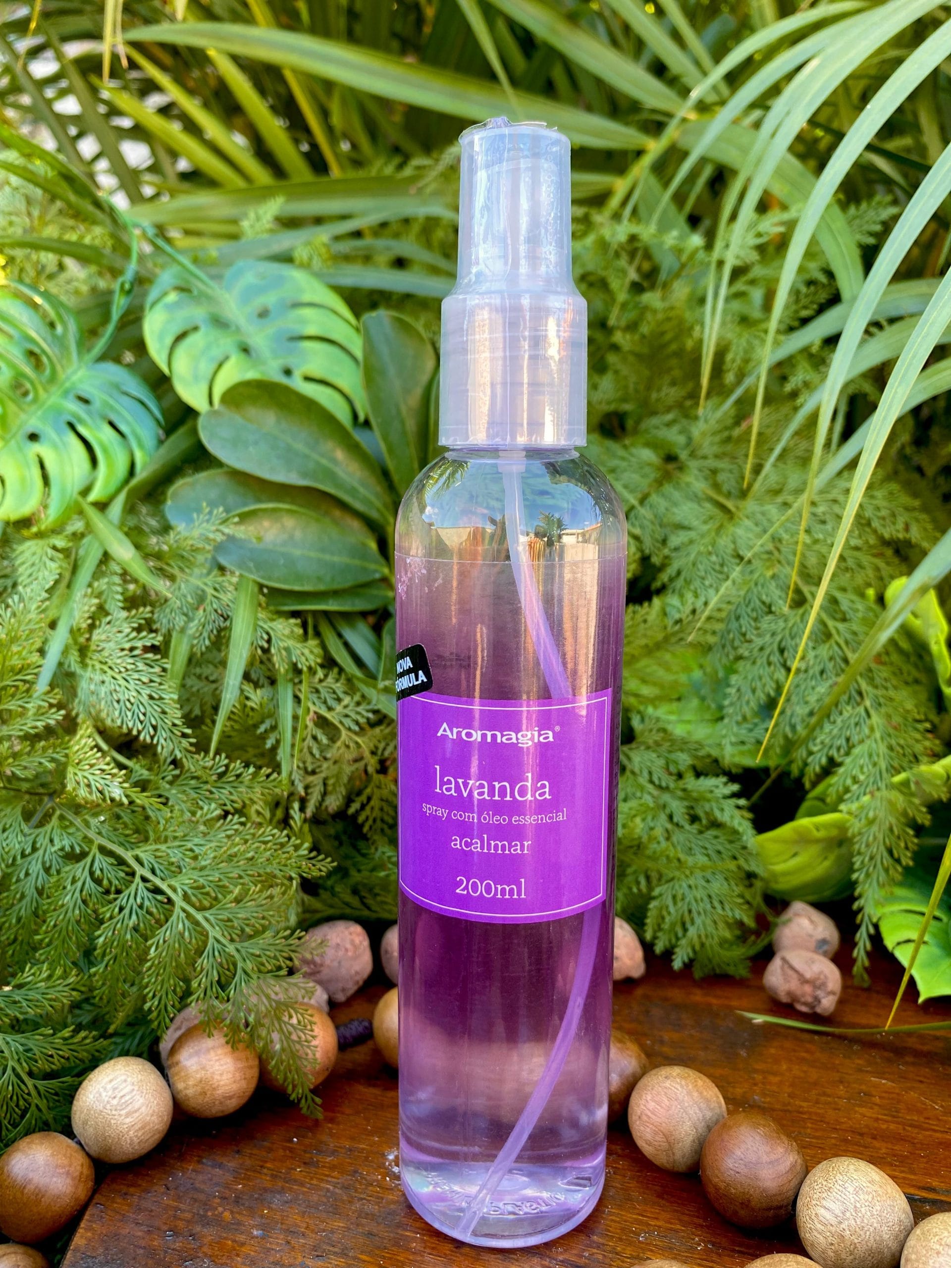 Spray com óleo essencial para odorizar ambientes e despertar sensação de calma, tranquilidade e paz.