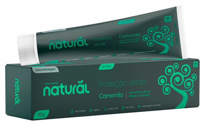 Vegano, cruelty-free, sem flúor, sem parabenos, sem sulfatos, sem propileno glicol e sem corantes artificiais. Contém menta/hortelã.