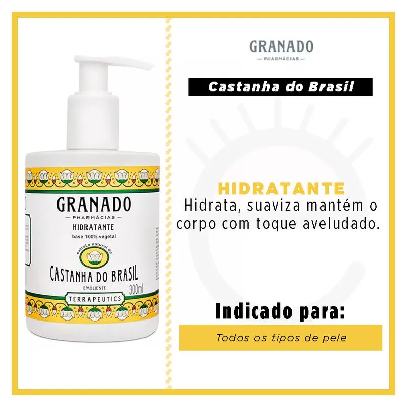 O Hidratante Terrapeutics Castanha do Brasilhidrata e previne o ressecamento da pele. Sua fórmula retém a umidade da pele, deixando-a macia, suave e perfumada. Produzido com base vegetal e alta concentração de extrato natural de chá branco, que tem ação revigorante. Fórmula fluida e de rápida absorção (não possui aspecto gorduroso). Indicado para todos os tipos de pele. Livre de parabenos e corantes. A Linha: Terrapeutics é um ritual diário de bem-estar! Produtos para o corpo, banho e a casa, enriquecidos com ingredientes naturais e extratos vegetais de flores e ervas usadas em terapias milenares de várias regiões da Terra. Modo de Usar:Aplique o hidratante diariamente por todo o corpo, massageando com movimentos suaves.