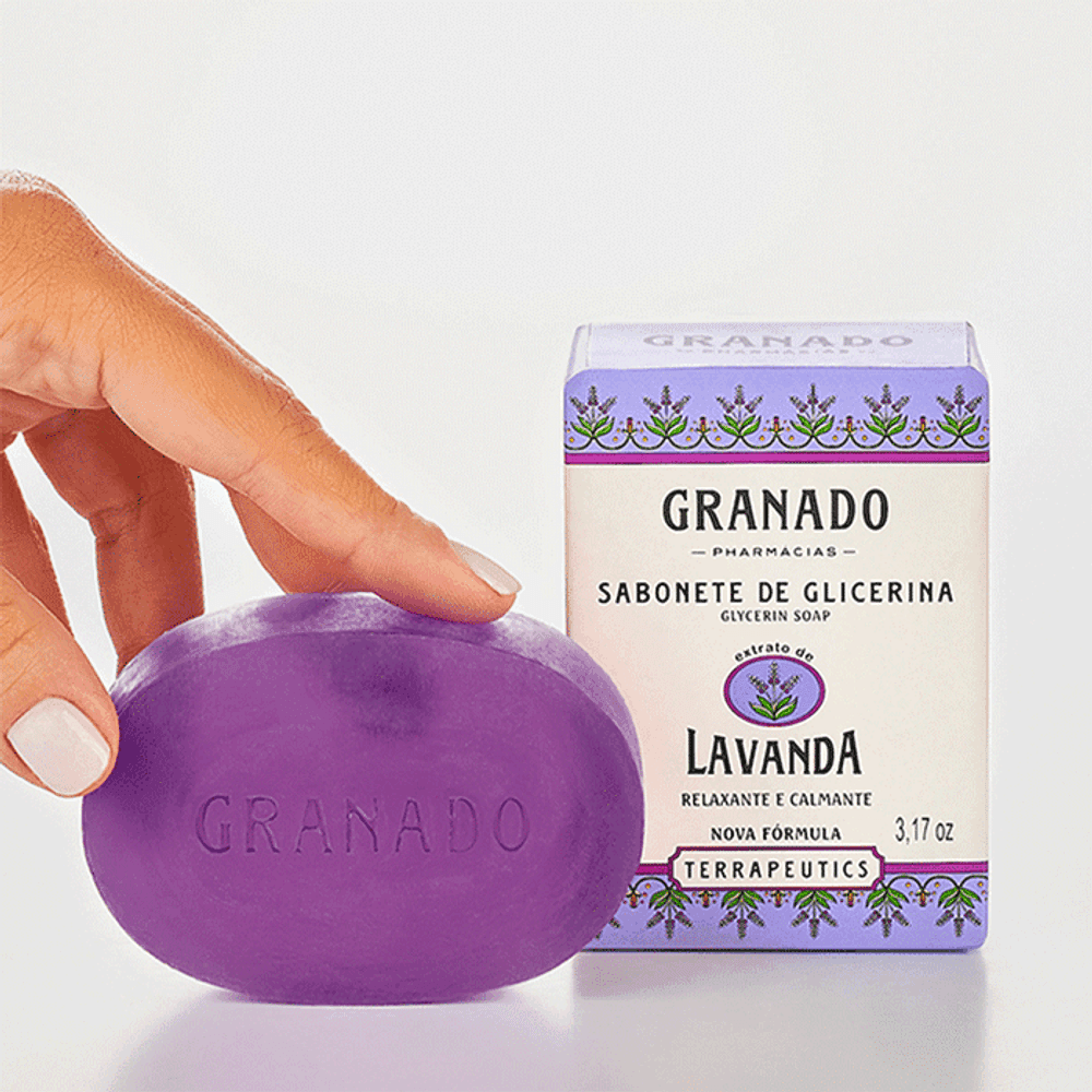 O Sabonete em Barra Granado Lavanda 90g é formulado com glicerina vegetal e alta concentração de extrato natural de lavanda, reconhecida por sua ação relaxante. Limpa suavemente a pele, deixando-a macia, perfumada e com sensação de conforto.