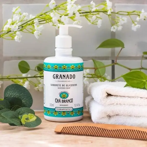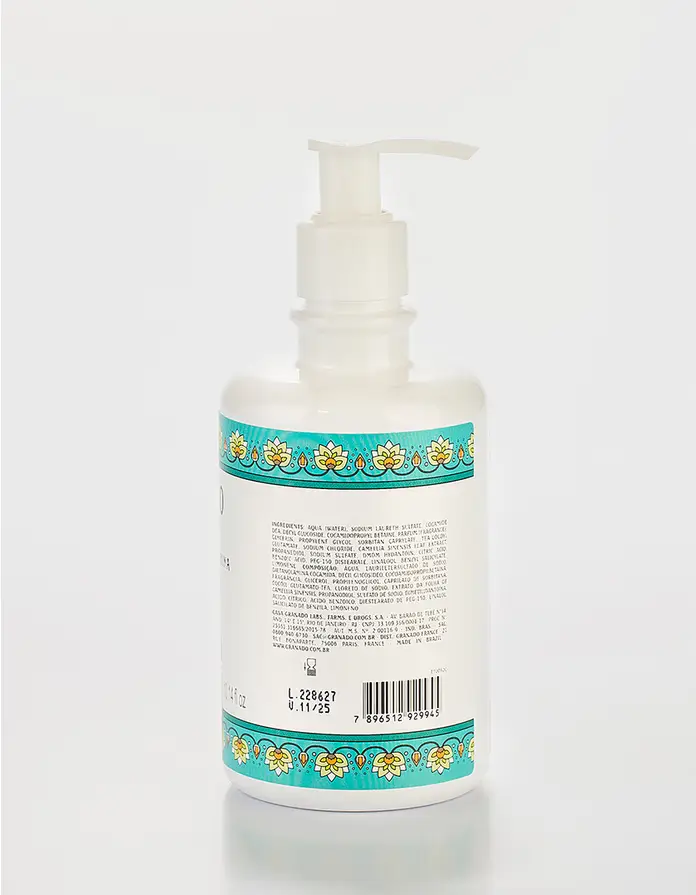 Formulado com pH da pele, glicerina vegetal e alta concentração de extrato natural de cha branco, que tem acao revigorante. Limpa suavemente a pele, deixando-a macia e perfumada. Formula biodegradável. Livre de parabenos e ingredientes de origem animal.