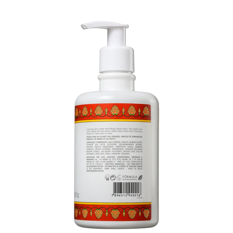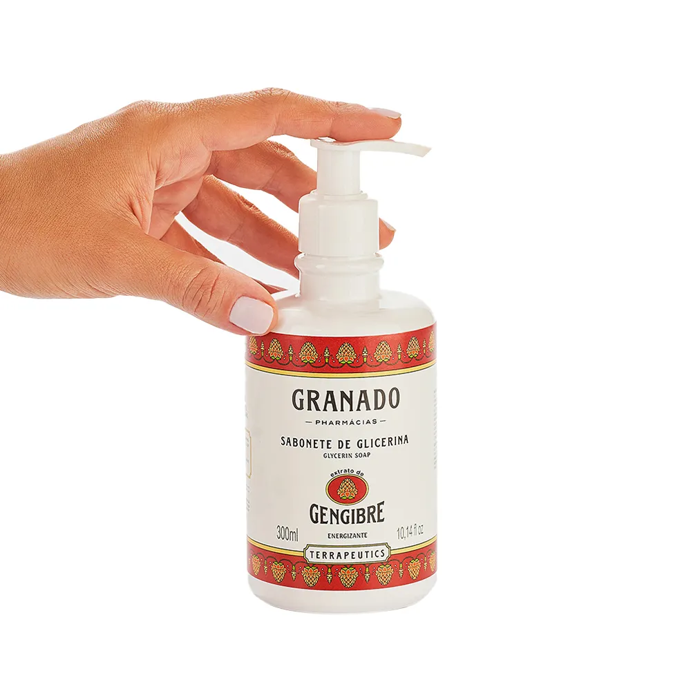 Sabonete Líquido Gengibre Terrapeutics Granado 300ml é formulado com pH da pele, glicerina vegetal e alta concentração de extrato natural de gengibre, que possui ação energizante. Limpa suavemente, deixando a pele macia e perfumada. Fórmula biodegradável, livre de parabenos e ingredientes de origem animal.