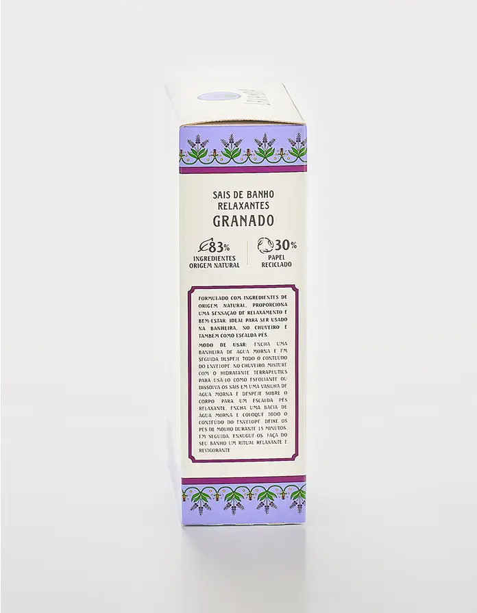 Sais de Banho Lavanda Terrapeutics Granado 5 sachets x 15g promovem relaxamento e bem-estar. Formulados com cristais de sal marinho e alta concentração de extrato natural de lavanda, que possui ação relaxante. Podem ser usados na banheira, no chuveiro ou como escalda-pés. Livres de parabenos, corantes e ingredientes de origem animal.
