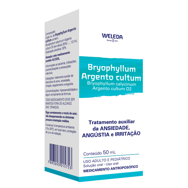 Bryophyllum Weleda 50ml como um medicamento produzido e indicado de acordo com o conhecimento antroposófico, age em primeira linha através do estímulo das forças autocurativas do organismo e serve para a harmonização de distúrbios da saúde acima relacionados. BRYOPHYLLUM é contraindicado para pessoas com hipersensibilidade aos componentes da fórmula. Até o momento, não foi relatada a necessidade de precaução, se administrado conforme a posologia sugerida. As orientações e recomendações previstas na bula estão relacionadas à via de administração indicada. O uso por outras vias não sugeridas por esta bula pode envolver risco e deve estar sob a responsabilidade do prescritor.