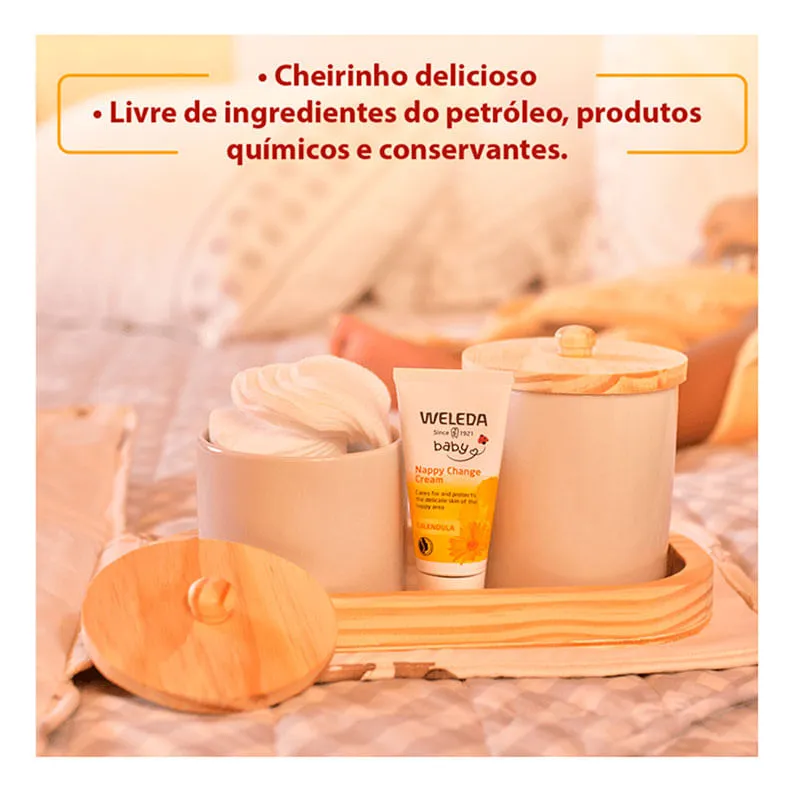 Baby Calêndula é creme para prevenção de assaduras da Weleda que possui ação 3 em 1: previne, acalma e restaura a pele do bebê. A combinação dos extratos de Calêndula e de Camomila com os óleos de Amêndoa Doce e Gergelim resultam em um creme encorpado que reduz a vermelhidão e oferece um cuidado suave para a pele do bebê na região da fralda. Também presentes na fórmula, a lanolina e o óxido de zinco que juntos são absorvidos com facilidade pela pele formando uma barreira de proteção contra a umidade. Benefícios do Produto: Com fórmula suave e ingredientes selecionados a dedo, cuida da pele irritada do bebê na região da fralda. | A textura e´ super cremosa, suave e perfeita pra prevenir assaduras, acalmar a vermelhida~o e proteger da umidade. | Pode ser usado desde o primeiro dia de vida. | Mantém a pele do bebe hidratada e macia. | Ingredientes 100% naturais. | Dermatologicamente testado. | Produto não testado em animais.