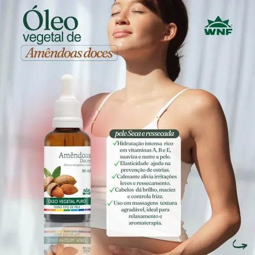 O Óleo Vegetal de Amêndoas Doces da WNF é ideal para quem busca hidratação profunda e cuidados naturais para a pele.