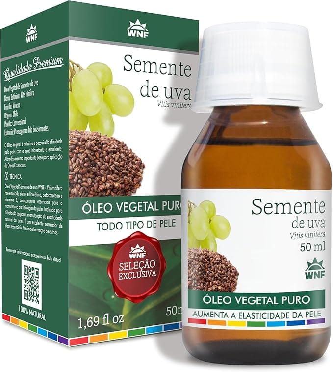 • Se você busca um óleo leve, de rápida absorção e altamente nutritivo, o Óleo Vegetal de Semente de Uva da WNF é a escolha ideal. Rico em antioxidantes, é perfeito para cuidados com a pele e os cabelos. É amplamente utilizado por grávidas devido à sua eficácia na prevenção e no tratamento de estrias, ajudando a manter a elasticidade da pele.